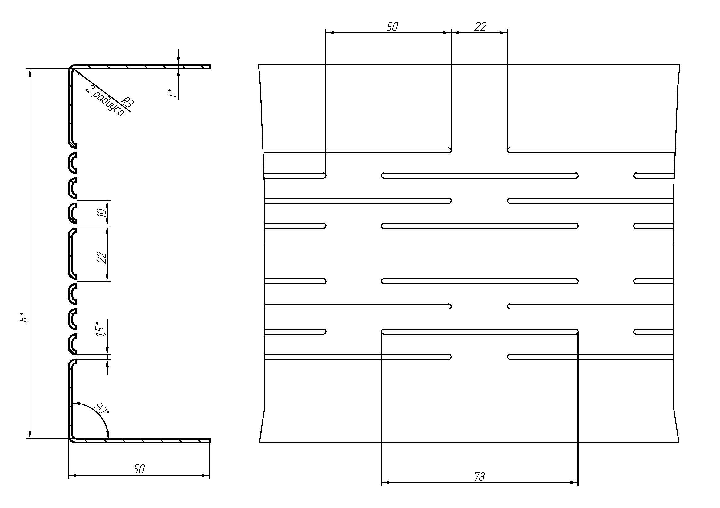 ТН(A)-(150-300)-50-t Толщина, t = 1,0; 1,2; 1,5; 2,0. Высота, h = 150; 200; 250; 300.
