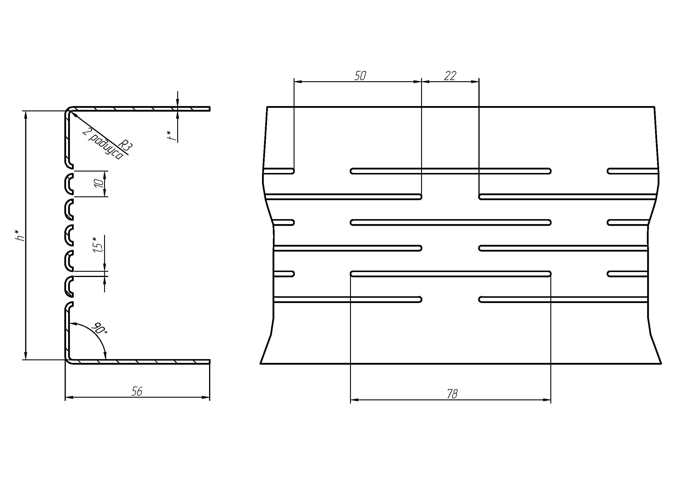 Толщина, t = 0,7; 0,8; 0,9; 1,0; 1,2; 1,5; 2,0.