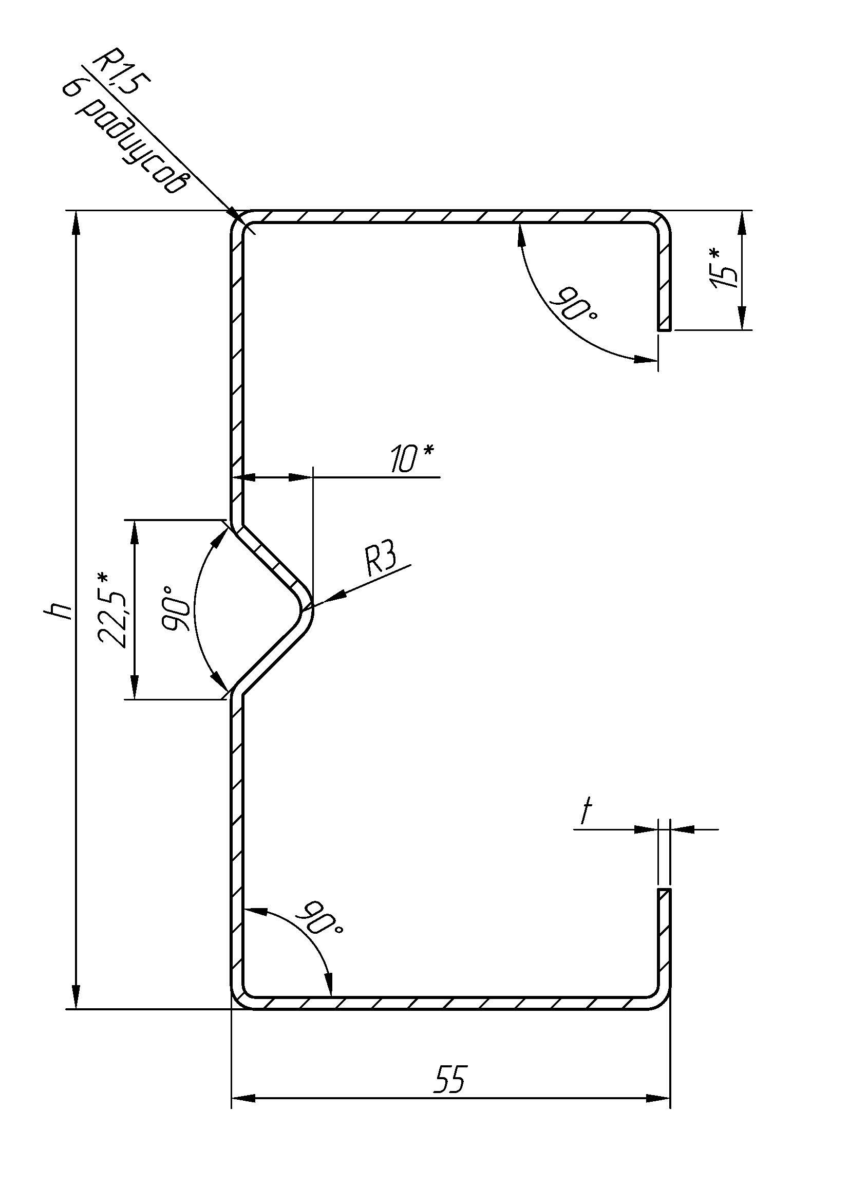 Профили стоечные с ребром равнополочные (полки 55/55)