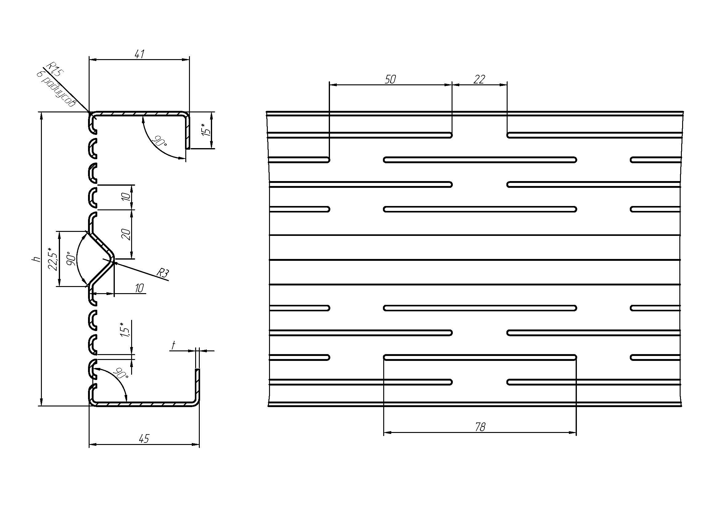 Термопрофили стоечные с ребром разнополочные (полки 41/45, 8 рядов термопросечек)
