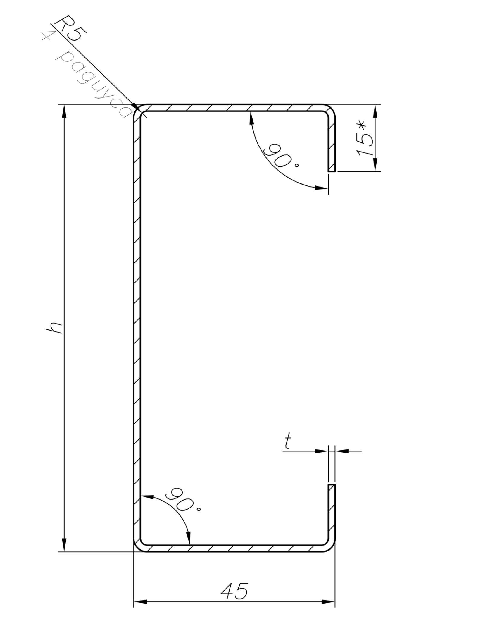 Толщина, t = 0,8; 1,0; 1,2; 1,5; 2,0.