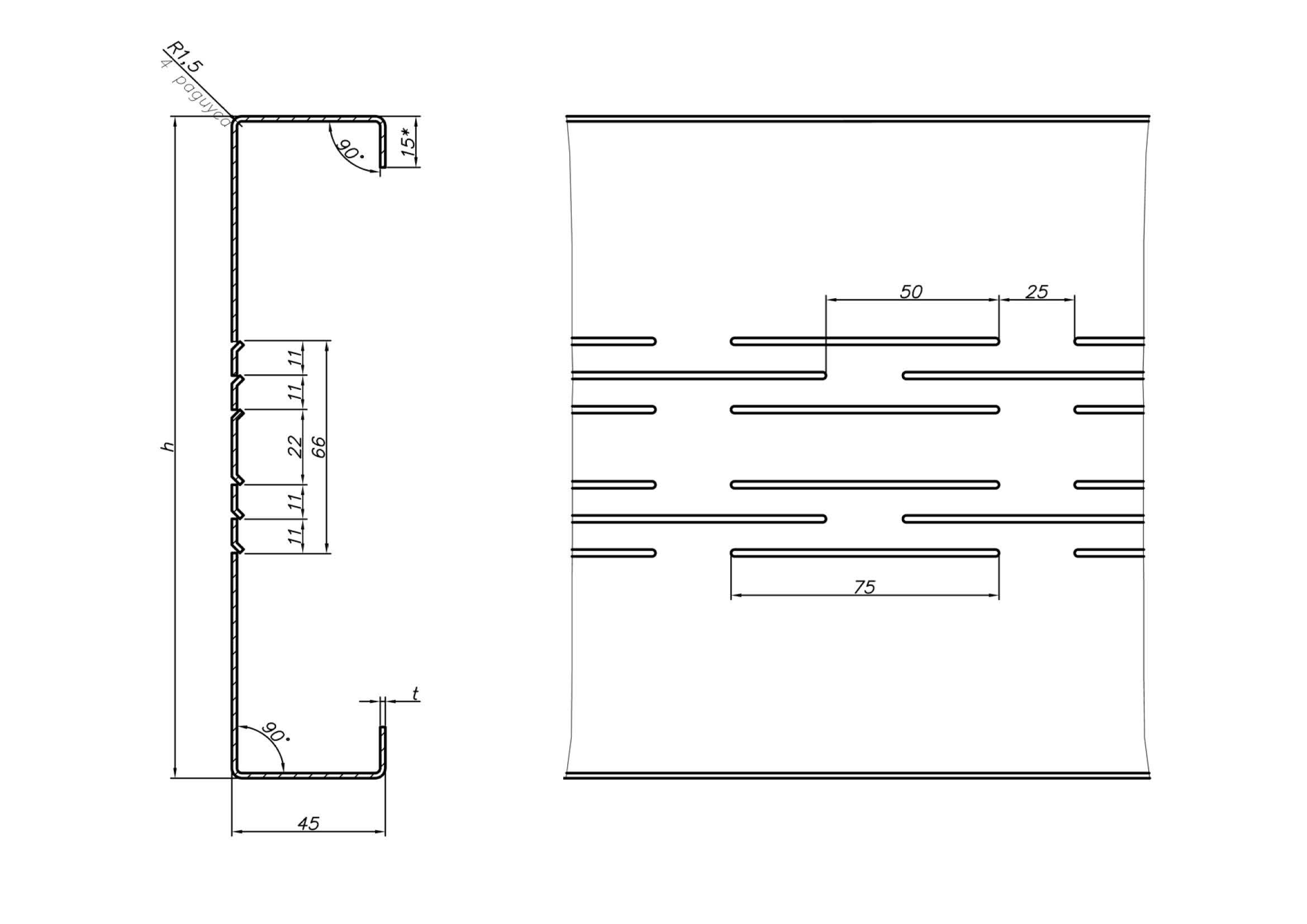 Толщина, t = 0,8; 1,0; 1,2; 1,5; 2,0.