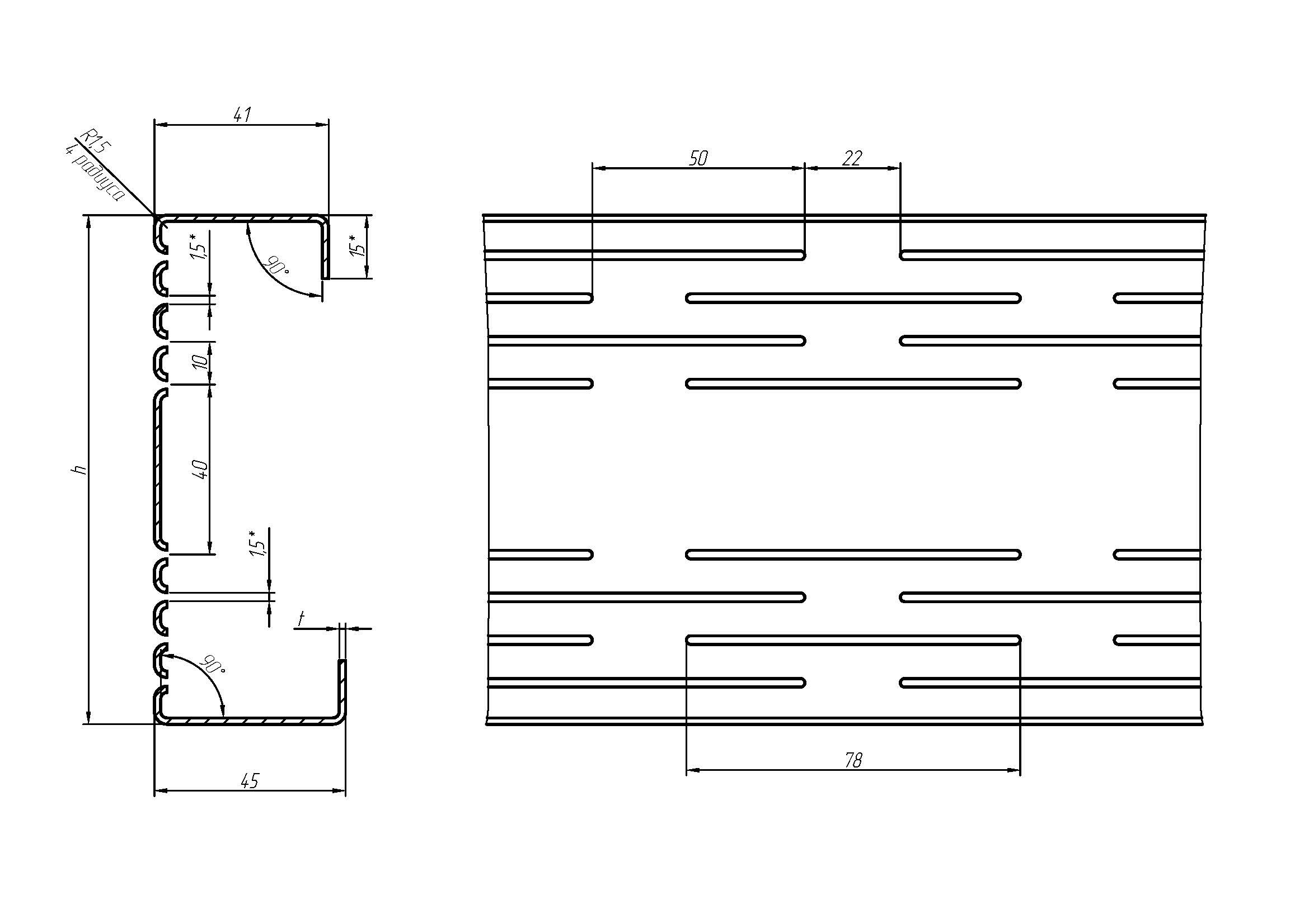 Термопрофили стоечные разнополочные (полки 41/45, 8 рядов термопросечек)