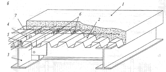 б – профлист одновременно выполняет функцию опалубки и несущую функцию совместно с бетонным перекрытием;