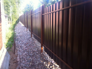 - Металлопрофиль – добротный и прочный стройматериал, который сложно сломать, да и не всяким ножницам по металлу он по зубам.